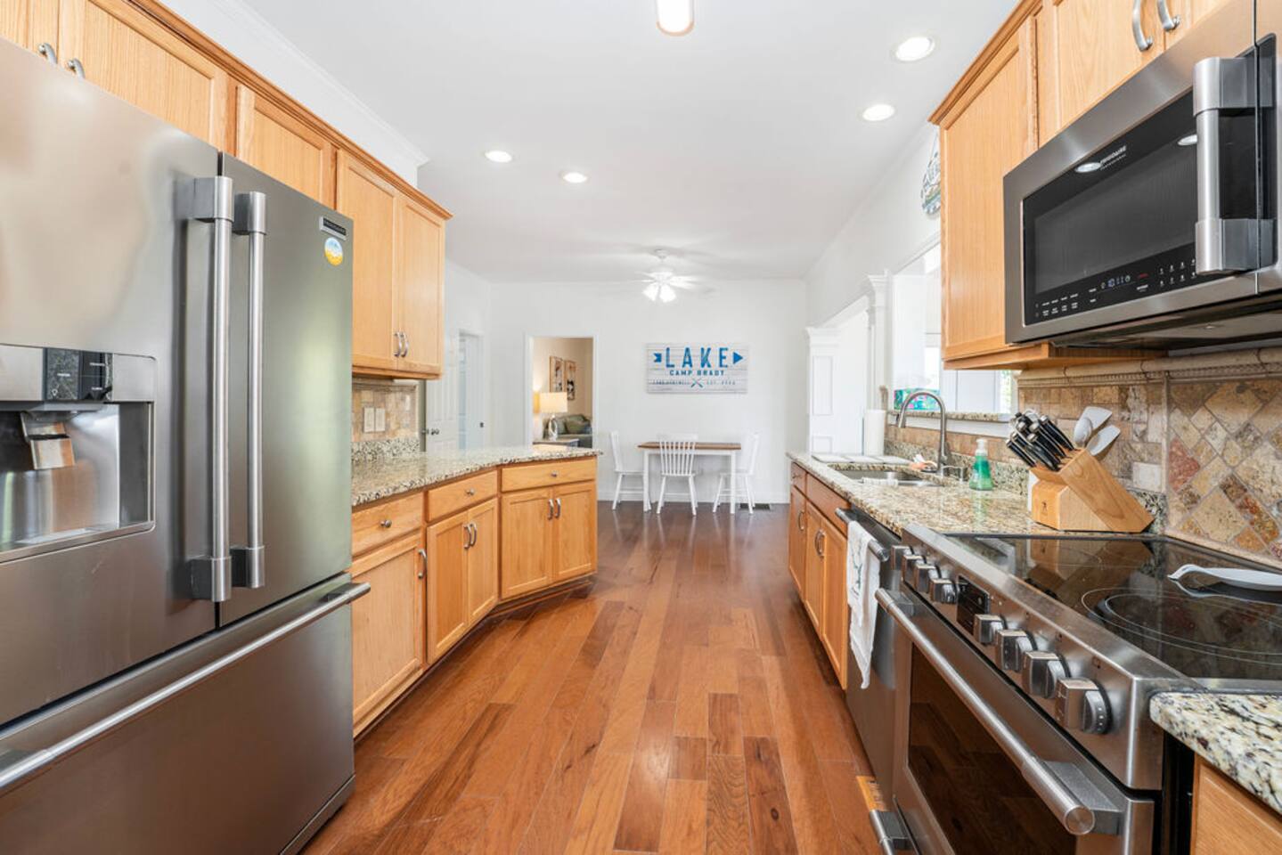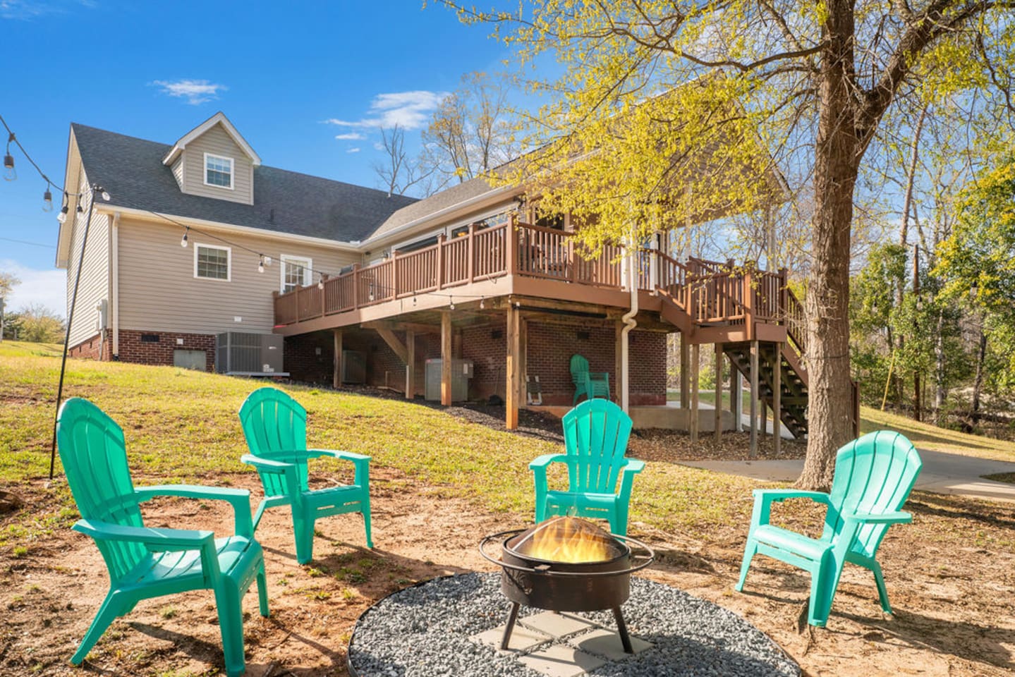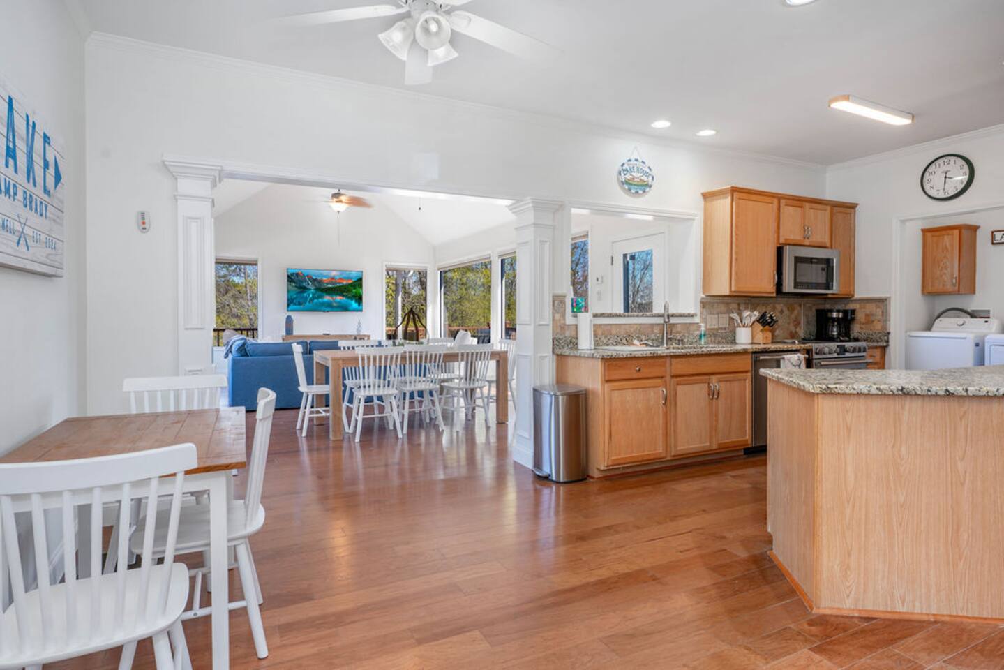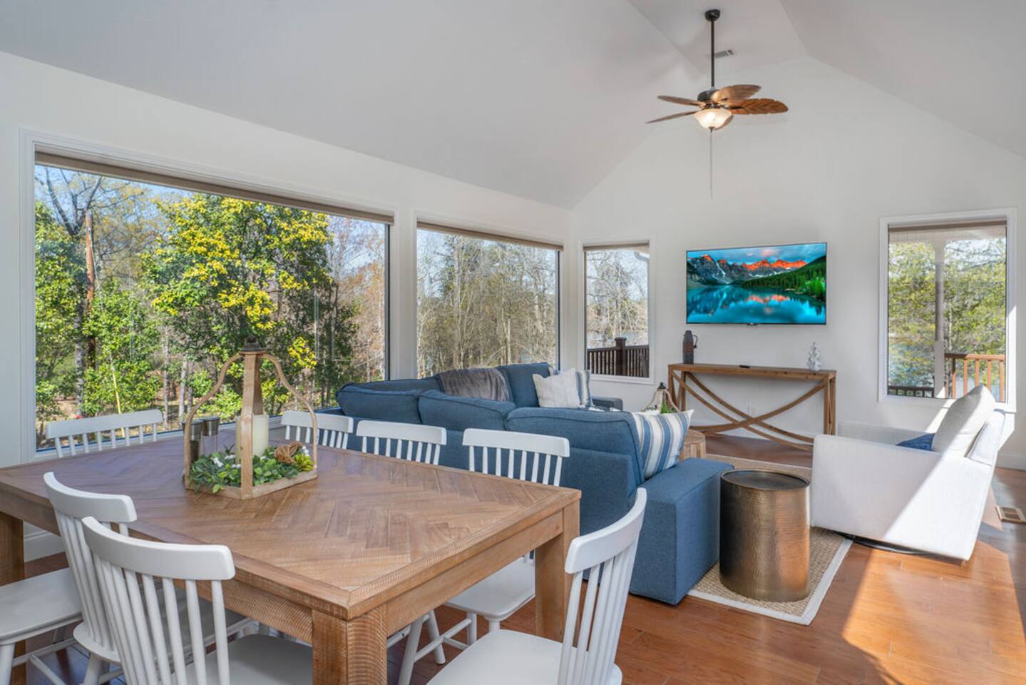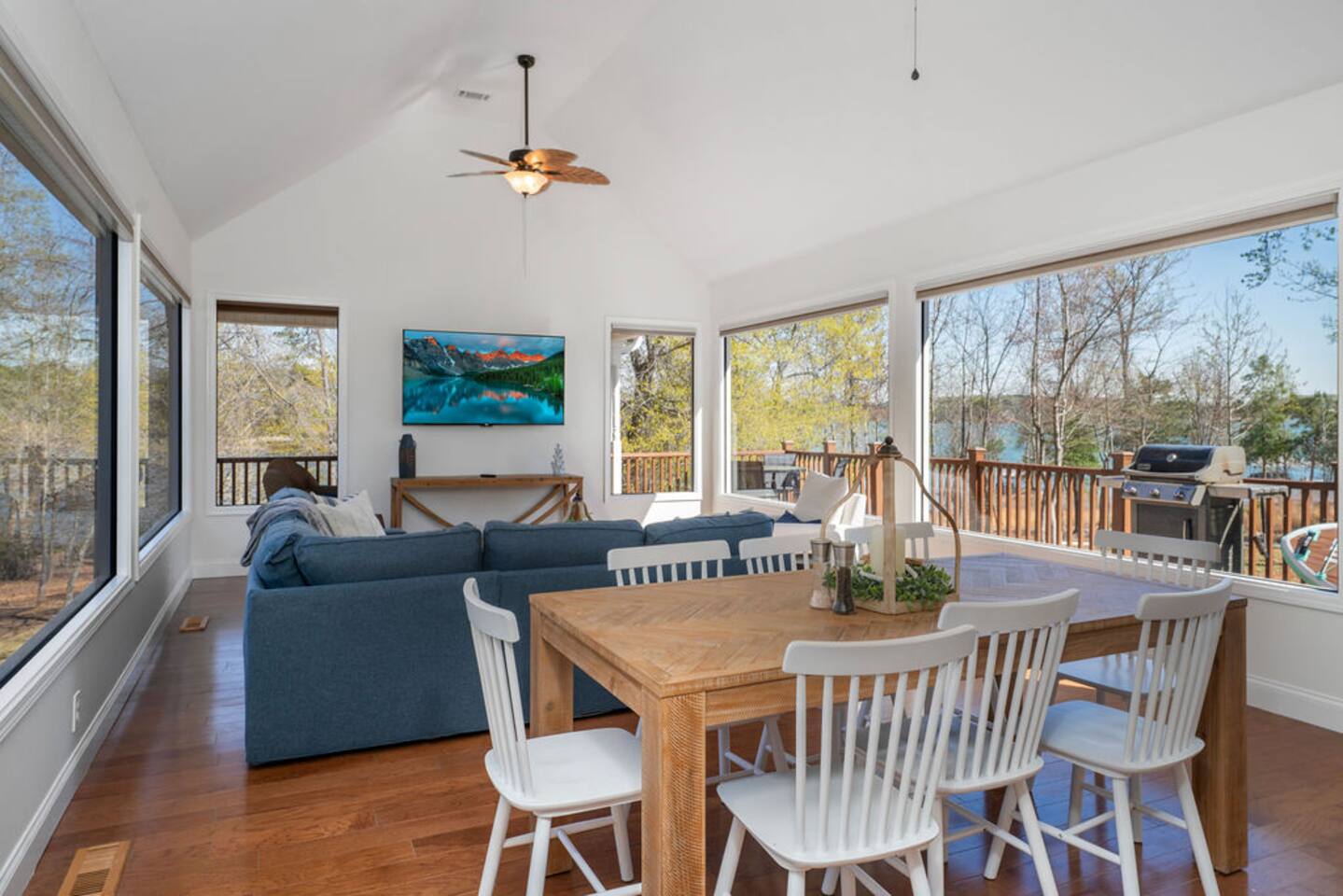 ๐ 4BR / 3BA โ sleeps up to 12 comfortably ๐ฟ Tile walk-in showers ๐ณ Fully equipped kitchen w/ coffee maker + Keurig ๐ฝ Dining room perfect for group meals ๐ Living room w/ pull-out sofa, TV & cozy ambiance ๐ฎ Bonus game room w/ arcade, TV ๐ Sunroom w/ panoramic lake views + TV ๐งบ Washer & dryer for guest use ๐ Outdoor Fun ๐ค Private dock w/ paddleboard & kayaks ๐ฅ Fire pit + outdoor projector screen for movie nights ๐ฏ Outdoor games: cornhole & KanJam ๐ Grill + spacious deck & screened porch ๐ช Outdoor dining & covered seating area ๐ Nearby Attractions (Anderson, SC) ๐ 30 min to Clemson University โ perfect for game days ๐ถ Lake Hartwell boat landings just minutes away ๐ Downtown Anderson โ dining, shops & breweries ๐ฅพ Hiking trails in Sadlers Creek State Park (20 min) ๐ฃ Fishing & water sports all around Lake Hartwell This stunning lakefront home offers ample space and modern amenities, comfortably sleeping up to 12 guests across four bedrooms. Upstairs, two bedrooms feature multiple beds, ideal for groups, and share a full bathroom with a tile walk-in shower for easy access. Downstairs, the master bedroom includes an en-suite full bathroom with a tile walk-in shower, while the second downstairs bedroom also has its own full bathroom with a similar shower. The heart of the home is a well-equipped kitchen, stocked with everything needed for cooking and entertaining, including both a coffee maker and Keurig machine. The dining room is perfect for shared meals, while the living room offers a pull-out sofa bed, TV, and cozy ambiance. A second all-purpose room adds fun with a classic arcade game, TV, and fireplace. The sunroom, with panoramic windows, another TV, and breathtaking views of the deck and lake, is a guest favorite. For added convenience, a washer and dryer are available for guest use. This home combines comfort, entertainment, and lakeside serenity for an unforgettable stay. This lakefront retreat is a haven for water enthusiasts, located just minutes from boat landings with a private dock, paddleboards, and kayaks for endless aquatic fun. A paved path leads directly to the dock and lake. The home and yard feature a spacious back deck, an outdoor dining area, and a covered seating area for all-season relaxation. Enjoy lively games of CanJam and cornhole, cozy evenings by the firepit, or movie nights with the outdoor projector and screen setup.