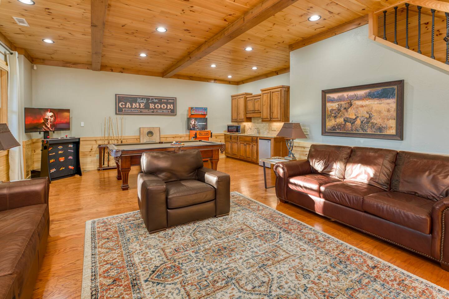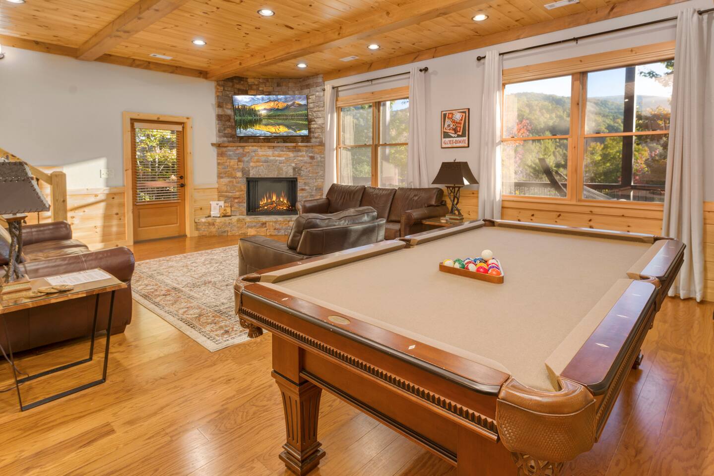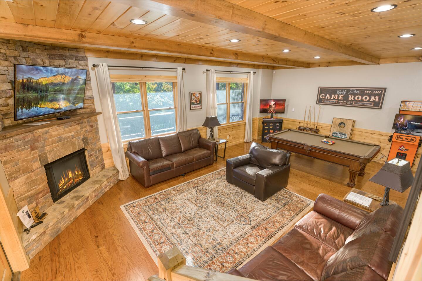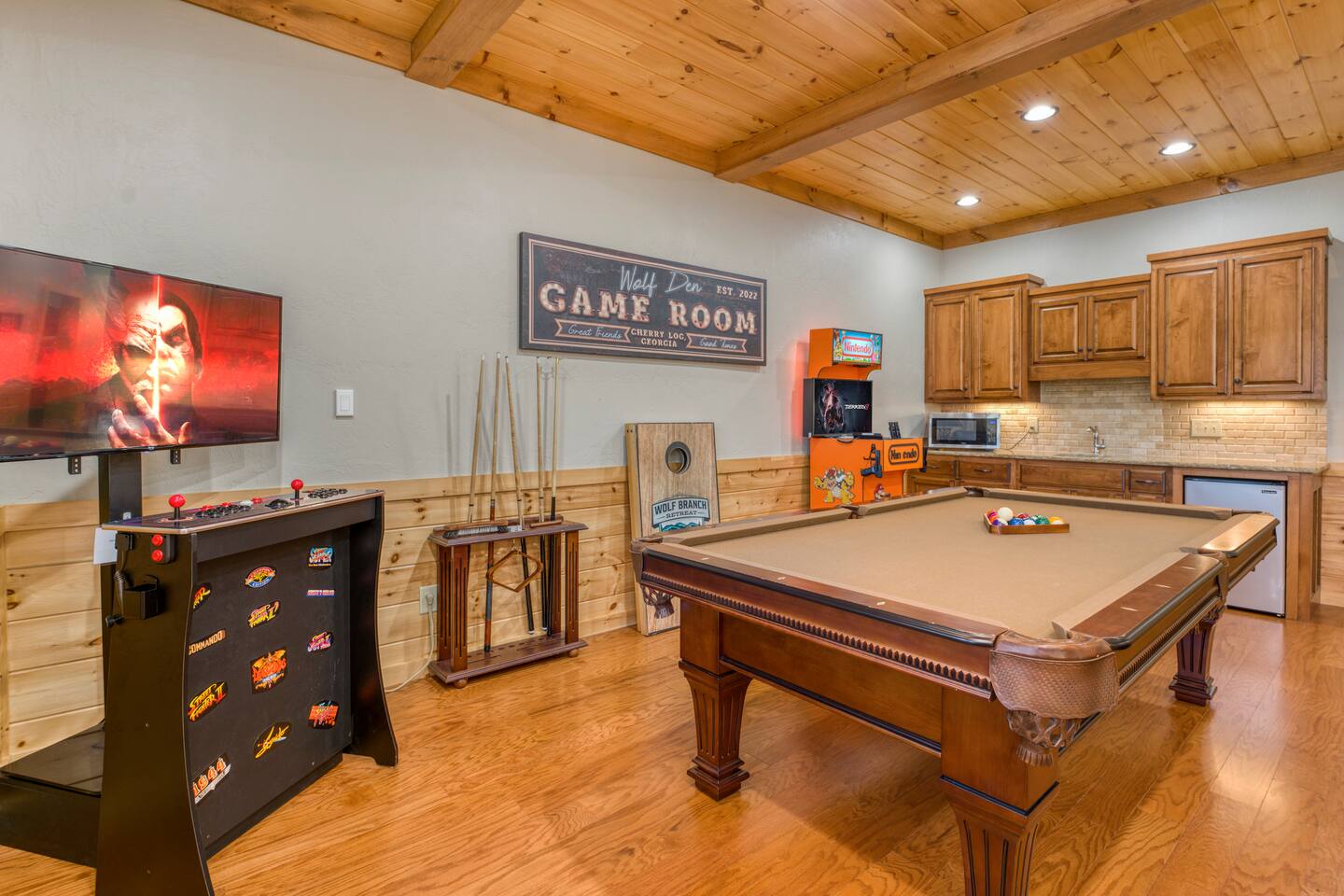 Wolf Branch Retreat features incredible views, private access to national forest trails, hot tub, theater room, arcade games, outdoor fireplace with tv, firepit area with Mountain View’s, EV charger, separate apartment bedroom with kitchenette over the garage, and much more. With the Toccoa River only minutes away, Downtown Blue Ridge within 20 minutes, and Downtown Ellijay within 30 min, this is the perfect Basecamp for your North Georgia adventure. 🥾🌄Private neighborhood access to National Forest hiking trails -Aska Adventure area -Close to Toccoa River access for tubing and fishing -Downtown Blue Ridge (20 min) -Ellijay (30 min) 🎱Game Room Fun with Pool Table -Pool Table -65 in Smart tv - fireplace -multiple arcade game machines with over 7000 games, PlayStation 5 arcade, -wet bar, mini refrigerator, sink, microwave, coffee pot -pinball machine 🛁Hot Tub With Mountain Views 🎞️Movie room -100+ in theater screen -4k Projector -8 leather recliners, -Surround sound 🔥Fire pit area with seating for 14 -Huge wrap around deck with fireplace, seating, TV, Mountain views -Outdoor gas grill 🛌 5 Bedrooms, 4 baths. Full Garage apartment (5th Bedroom). -Kitchen - fully equipped main level kitchen, stainless steel appliances, oven, gas stove, custom cabinets, granite countertops, breakfast bar seats 3, kitchen utensils, microwave, toaster, coffeemaker -Dining Room - dining table seats 8, breakfast bar seats 3 -Family Room - 75” Smart TV, stacked stone gas fireplace, oversized L-shaped couch, two chairs -Loft - queen bed -Detached Garage Apartment - living area, love seat, 65” Smart TV, gas fireplace, two full beds; kitchenette, oven, electric stove, mini refrigerator, microwave, kitchen utensils, sink; bathroom, walk in shower, granite top vanity -Bedroom - main level master bedroom, king bed, smart TV. Deck Access. -Upstairs master bedroom, king bed, 43” Smart TV, - Downstairs bedroom; two twin bunk beds, queen bed, 43” Smart Smart TV, gas fireplace, two full beds -Bathroom - main level master bathroom, tiled walk in shower, granite top double vanity; - Upstairs master bathroom, tiled walk in shower, granite top double vanity; - Downstairs bathroom, tub/shower combo, granite top vanity; - Detached garage apartment, walk in shower, granite top vanity Laundry - washer and dryer on main level Children’s Amenities - pack n’ play Interaction with guest: 🕐 Always at Your Service. We're here 24/7 on the app for a seamless & joyful stay. Contact us anytime for questions or assistance. Your comfort is our priority! Let's make your stay remarkable. Neighborhood Description: 🌟 Explore the Serene Neighborhood Around Wolf Branch Retreat! Nearby Attractions: 🍎Mercier Orchards: 24 ( 24 min): Apple picking, Cider tasting room, beautiful views 🍇 Serenberry Vineyards (30 min): Sip and savor award-winning wines amidst scenic vineyards. 🚂 Blue Ridge Scenic Railway ( 20min): Embark on a journey through the picturesque Blue Ridge mountains. 🌉 Toccoa Swinging Bridge (20 min): Experience adventure and breathtaking views on this iconic bridge. 🏞️ Lake Blue Ridge (20 min): Enjoy water activities and lakeside picnics in a stunning natural setting. Nearby Airports: 🛫 Hartsfield Atlanta Airport (2 hours): Convenient access to a major airport for your travel needs. Local Dining and Shopping: 🍽️ Harvest On Main (20 min): Indulge in farm-to-table cuisine at this renowned restaurant. 🍛 Southern Charm Restaurant (20 min): Experience southern hospitality and delectable comfort food. 🍷 Black Sheep Restaurant (20 min): Enjoy a culinary journey with eclectic dishes and fine wines. 🛒 Walmart Supercenter (15 min): Convenient shopping for all your essentials. Whether you're seeking adventure or relaxation, Star Mountain Retreat's neighborhood offers a wealth of attractions and amenities, promising an unforgettable mountain getaway! 🏞️🍷🍴 Getting Around: 🚗 Getting Around Wolf Branch Retreat: Easy and Convenient! Arrive hassle-free with ample parking. The paved driveway and well-maintained roads provide smooth navigation, allowing you to focus on the beauty of your surroundings. 🌲