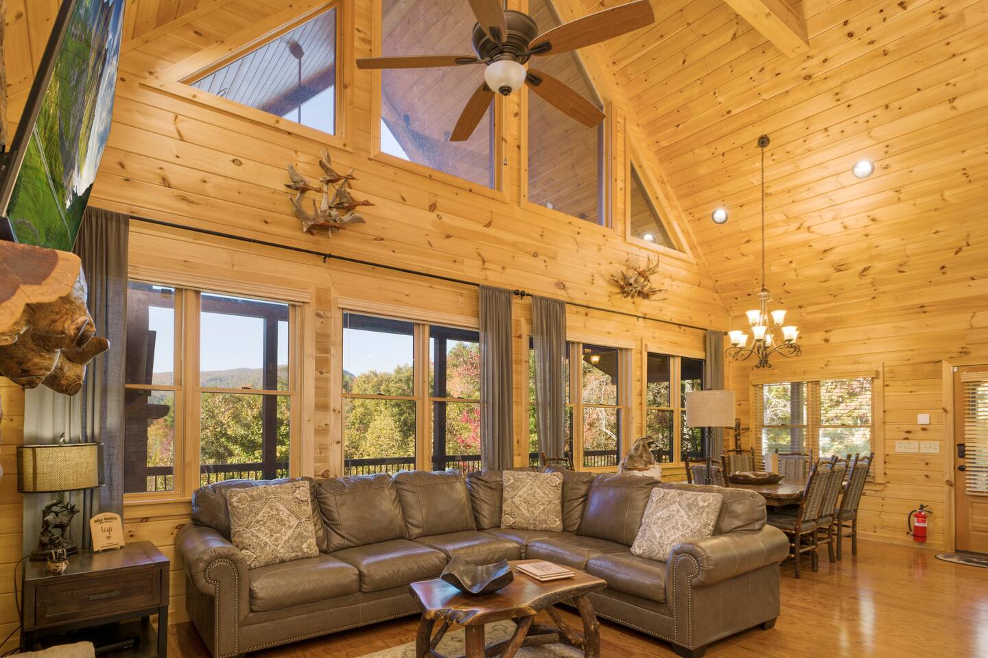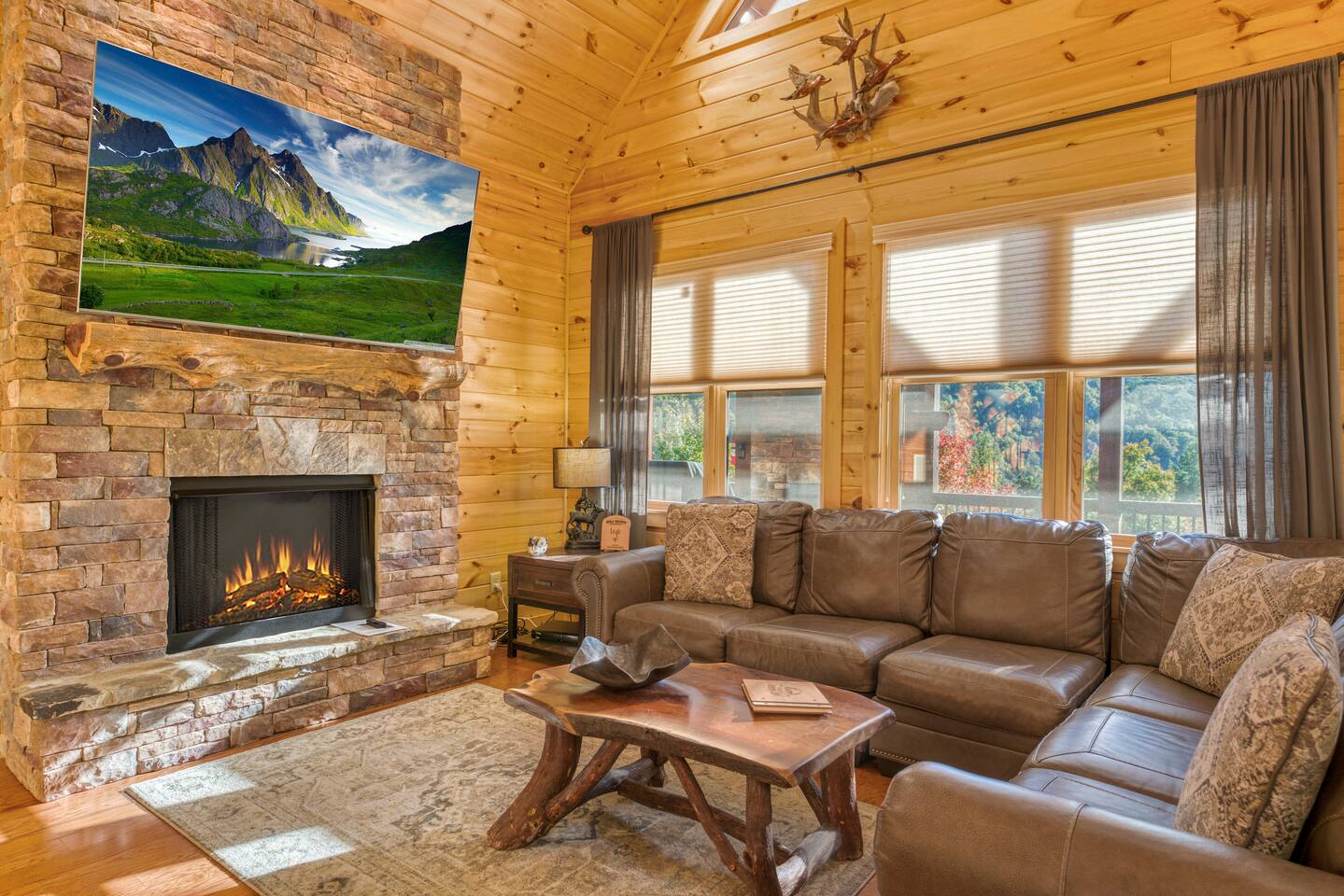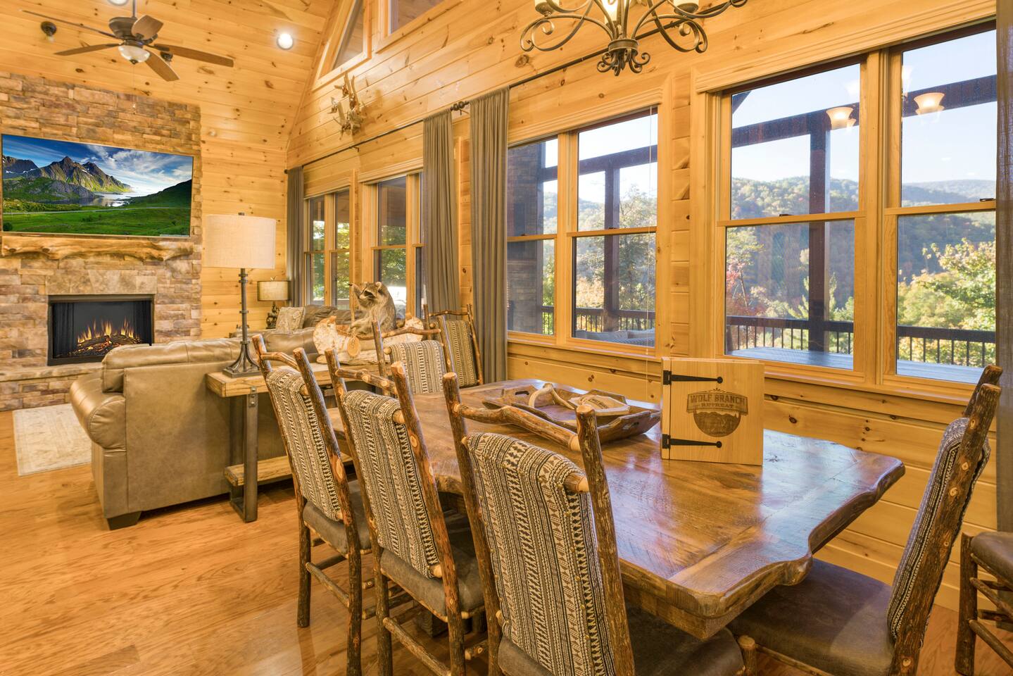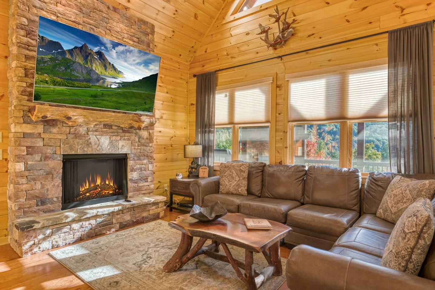 Expansive Views Cozy Fireplace Game Room Fun 5BR, 4BA, Sleeps 14 Hot Tub Bliss Game Room Theater Room-Fire Pit Escape to Wolf Branch Retreat, a breathtaking cabin nestled in the serene setting of Cherry Log. Embrace relaxation and adventure with a hot tub and mountain vistas! Downtown Blue Ridge 20 min Fall Branch Trails 5 min Cartecay Vineyards 30 min Toccoa River Tubing 30 min Lake Blue Ridge - 25 min