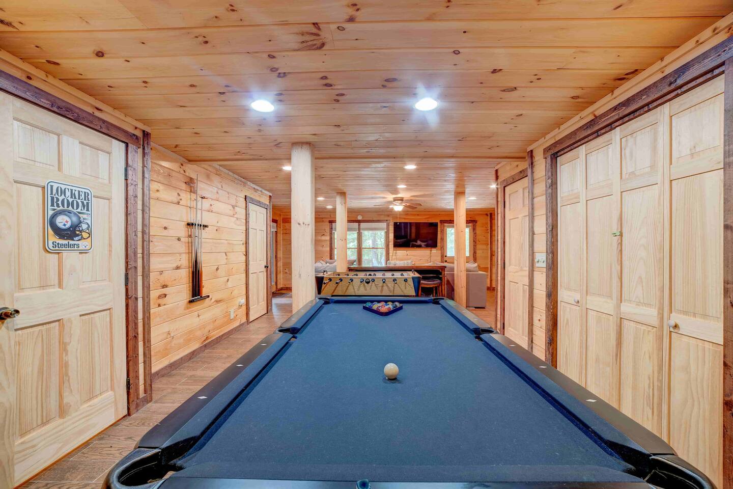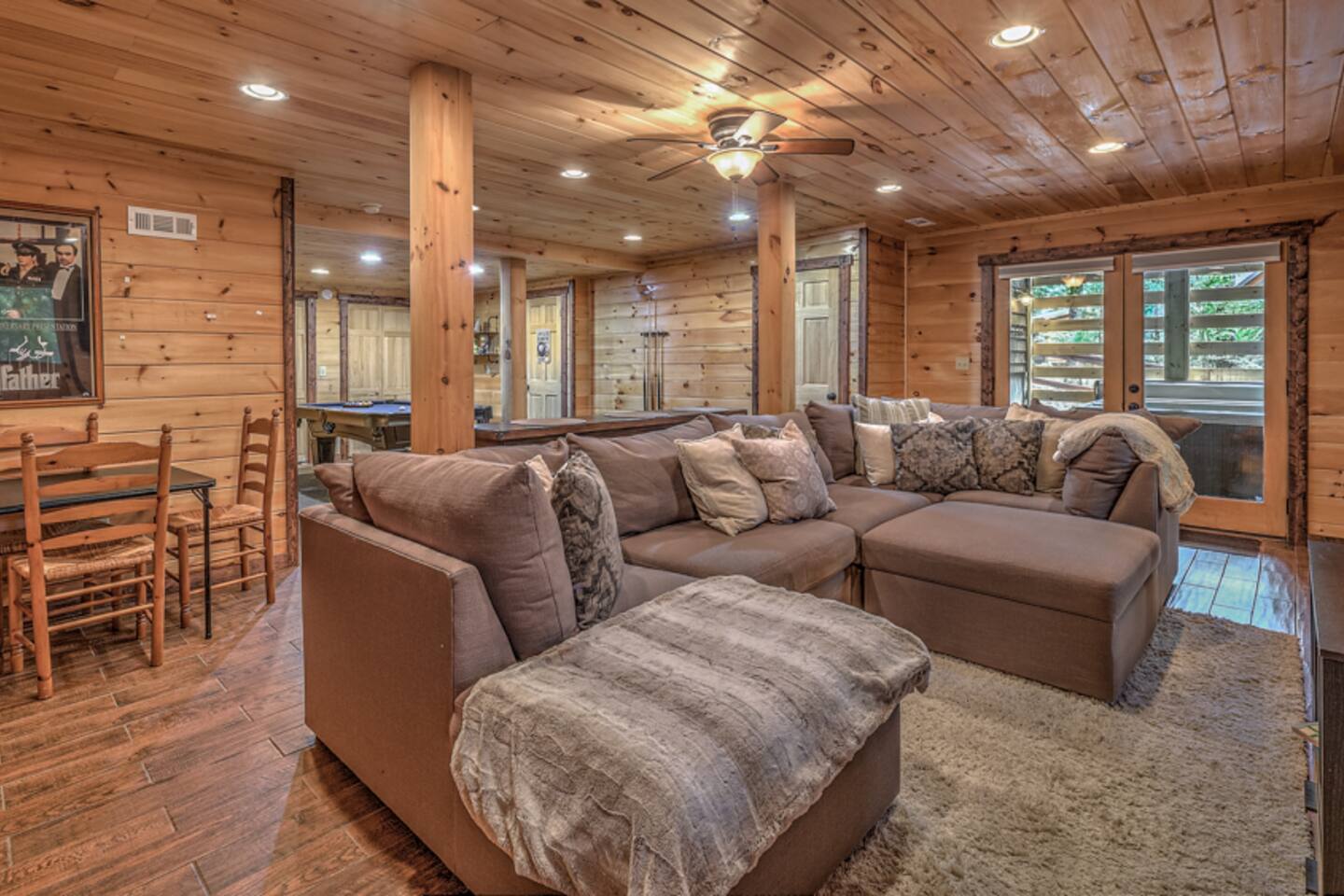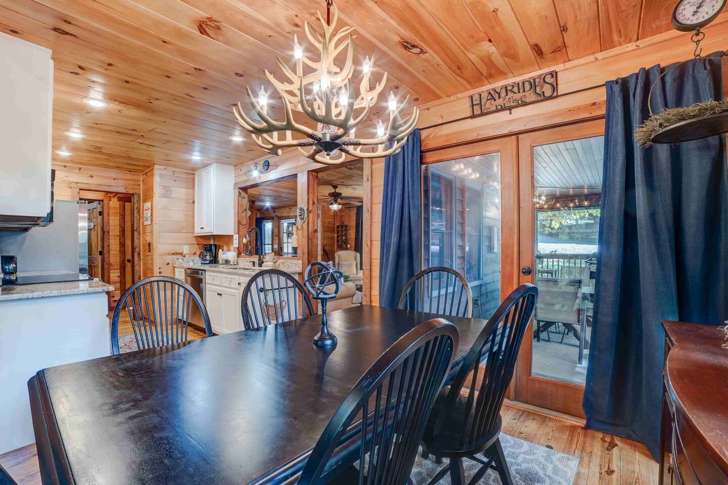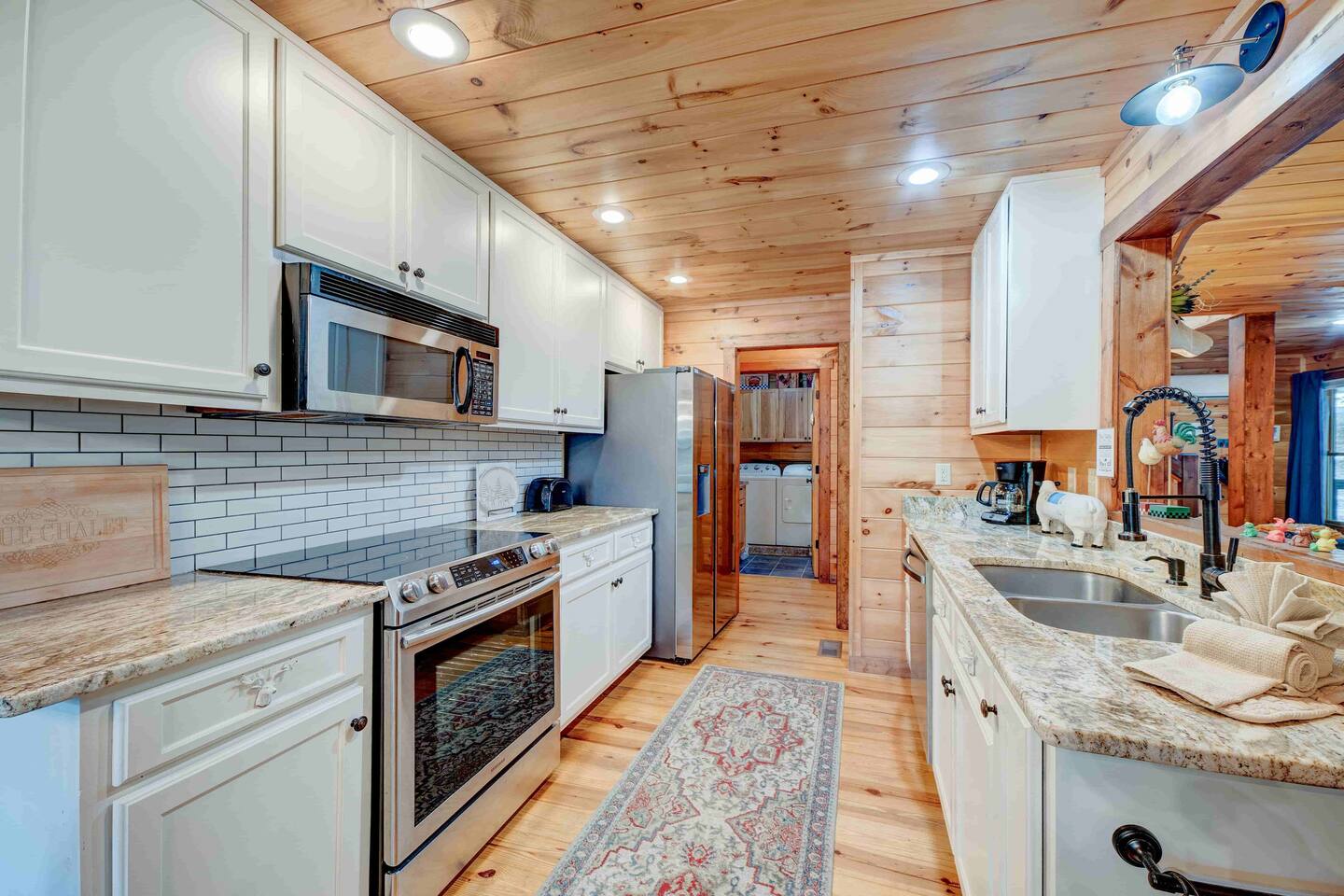 🏡 Welcome to Blue Chalet - Your Cozy Mountain Retreat! Escape to this charming and inspirational cabin just 15 minutes from downtown Blue Ridge. Unwind and let the world's worries pass you by in this recently remodeled haven. 🏡 Cabin Features: • Cape Cod Cozy Vibes: More than just a cabin, this place exudes the warmth of a Cape Cod home. • Unique Touches: Deer head kitchen cabinet handles, stunning granite, and thoughtful decor make this cabin truly one-of-a-kind. • Game Room Fun: Enjoy family memories with a pool table and game table. • Dog-Friendly Paradise: Fully equipped with dog gates, enclosed yard. Bring your best friend along! 🛌 4 Bedrooms: • Main Suite: King bed, private screened porch for romantic mountain evenings. • Upstairs Bedrooms: King bed and Queen bed for ultimate comfort. 🛁 3 Bathrooms: • Main Level Master Bath: Walk-in shower, granite top vanity. • Upstairs Bath: Tub/shower combo, granite top vanity. • Downstairs Bath: Walk-in shower, granite top vanity. 🍽️ Kitchen: • Fully equipped with stainless-steel appliances and custom cabinets. • Granite countertops and a white subway tile backsplash for a pristine cooking space. 🌲 Outdoor Amenities: • Multiple screened-in porches, patio seating, and decks for a relaxing outdoor experience. • Hot tub bliss, fire pit area, and a fenced dog yard for your enjoyment. 📺 Entertainment and Media: • Game Room with pool table, 55” Smart TV, and plush sectional sofa. • Family Room with a grand fireplace and 55” Smart TV for cozy times. • Unlimited WiFi: Stay connected and share your mountain retreat experience! 🚿 Other Amenities: • Main level laundry with washer and dryer. • Mini split AC/Heat systems for optimal temperature control. • Paved road to gated community, well-maintained gravel road to the cabin, and a gravel driveway for easy access. Book your unforgettable stay at the Blue Chalet and make memories that will last a lifetime! 🌟