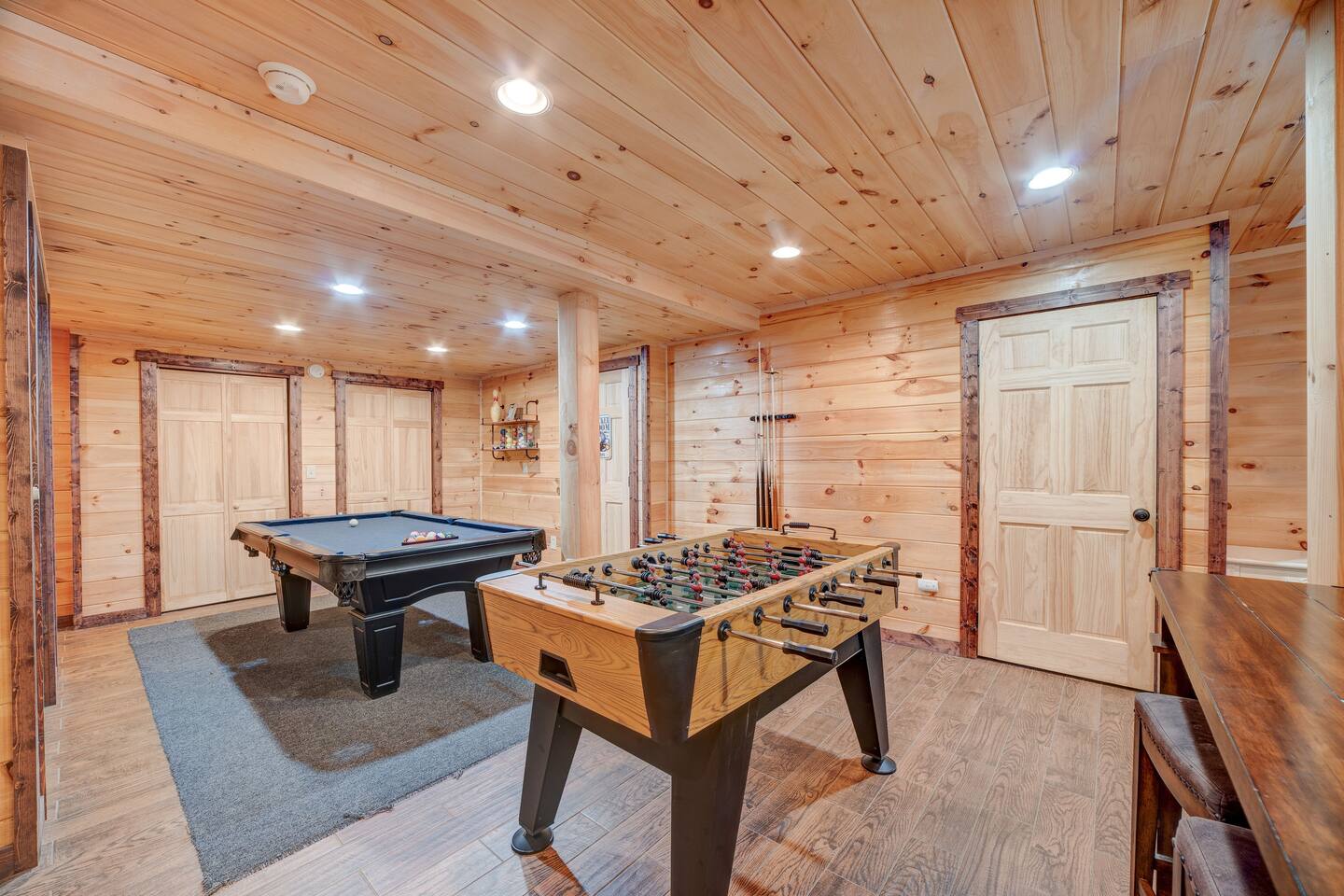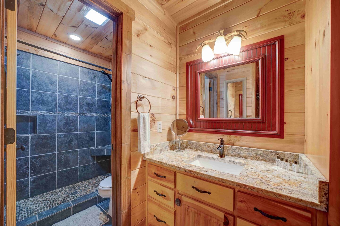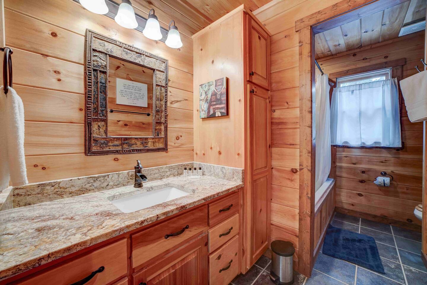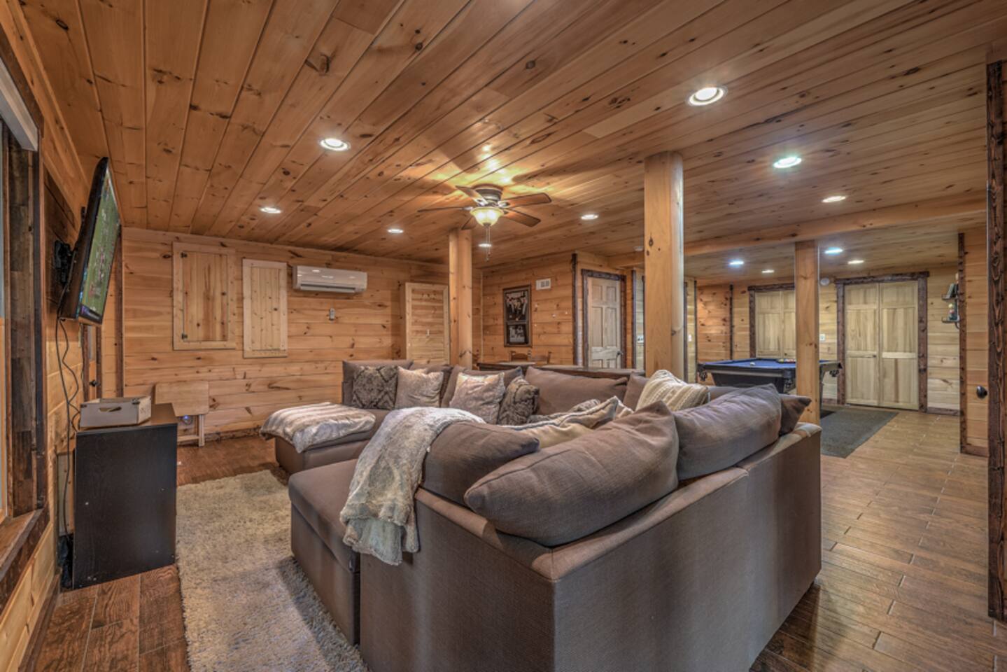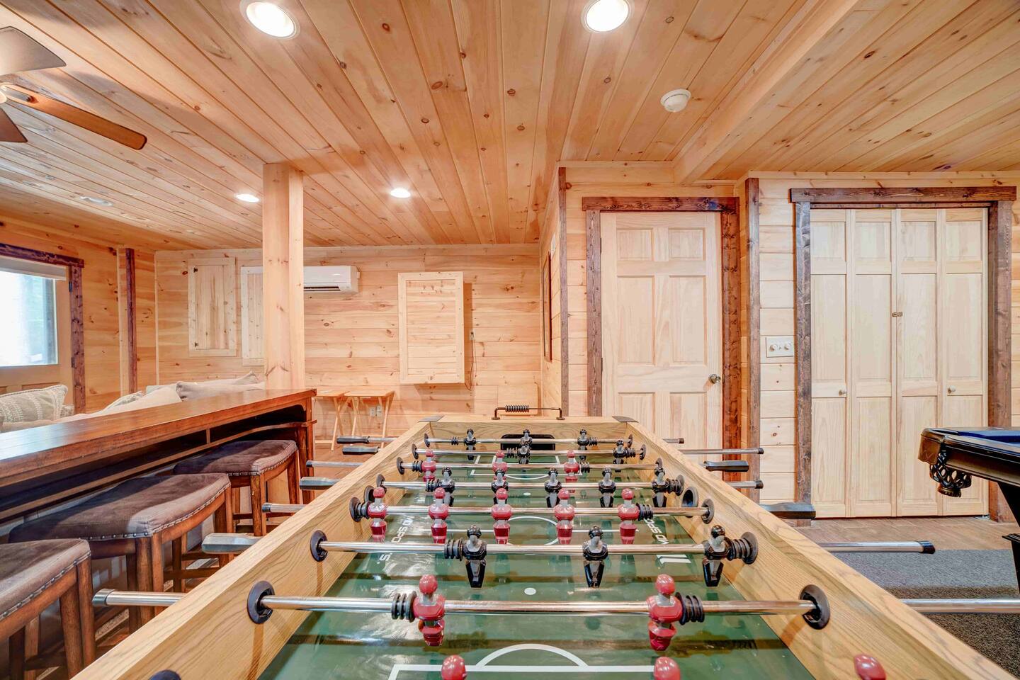 🏡 Welcome to Blue Chalet - Your Cozy Mountain Retreat! Escape to this charming and inspirational cabin just 15 minutes from downtown Blue Ridge. Unwind and let the world's worries pass you by in this recently remodeled haven. 🏡 Cabin Features: • Cape Cod Cozy Vibes: More than just a cabin, this place exudes the warmth of a Cape Cod home. • Unique Touches: Deer head kitchen cabinet handles, stunning granite, and thoughtful decor make this cabin truly one-of-a-kind. • Game Room Fun: Enjoy family memories with a pool table and game table. • Dog-Friendly Paradise: Fully equipped with dog gates, enclosed yard. Bring your best friend along! 🛌 4 Bedrooms: • Main Suite: King bed, private screened porch for romantic mountain evenings. • Upstairs Bedrooms: King bed and Queen bed for ultimate comfort. 🛁 3 Bathrooms: • Main Level Master Bath: Walk-in shower, granite top vanity. • Upstairs Bath: Tub/shower combo, granite top vanity. • Downstairs Bath: Walk-in shower, granite top vanity. 🍽️ Kitchen: • Fully equipped with stainless-steel appliances and custom cabinets. • Granite countertops and a white subway tile backsplash for a pristine cooking space. 🌲 Outdoor Amenities: • Multiple screened-in porches, patio seating, and decks for a relaxing outdoor experience. • Hot tub bliss, fire pit area, and a fenced dog yard for your enjoyment. 📺 Entertainment and Media: • Game Room with pool table, 55” Smart TV, and plush sectional sofa. • Family Room with a grand fireplace and 55” Smart TV for cozy times. • Unlimited WiFi: Stay connected and share your mountain retreat experience! 🚿 Other Amenities: • Main level laundry with washer and dryer. • Mini split AC/Heat systems for optimal temperature control. • Paved road to gated community, well-maintained gravel road to the cabin, and a gravel driveway for easy access. Book your unforgettable stay at the Blue Chalet and make memories that will last a lifetime! 🌟